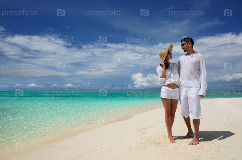Пара на пляже на Мальдивских островах