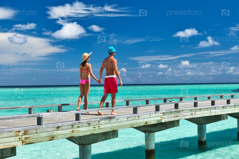 Пара на пирсе на Мальдивах