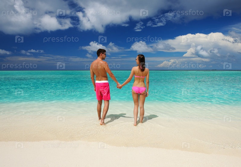 Пара на пляже на Мальдивских островах