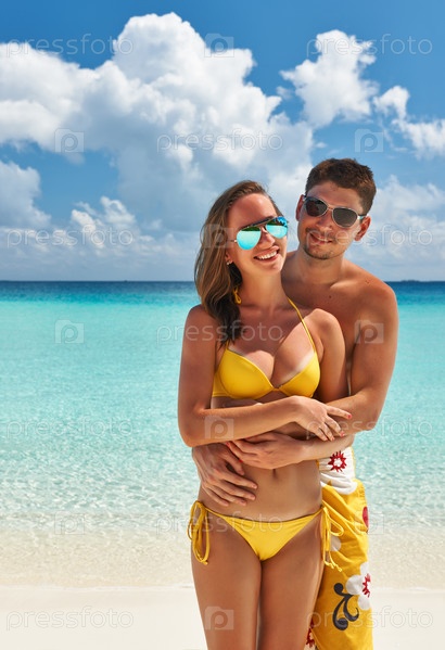 Пара на пляже на Мальдивских островах