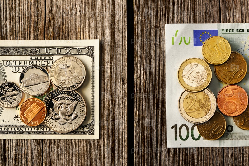 Доллары и евро на деревянном фоне