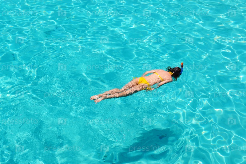 Женщина занимается подводным плаванием
