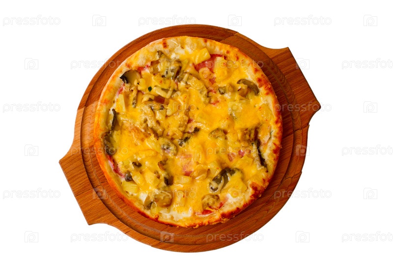 Хрустящая итальянская пицца с грибами, сыром и помидорами, изолированная на белом фоне с путем отсечения
