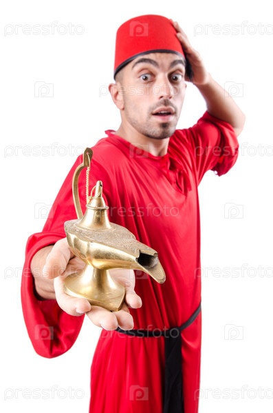 Турок с лампой на белом фоне