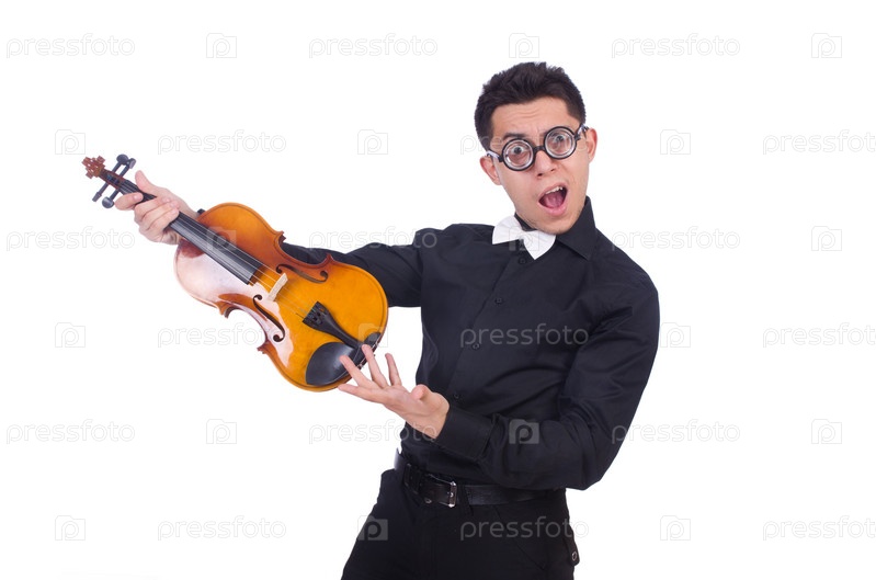 Смешной скрипач на белом