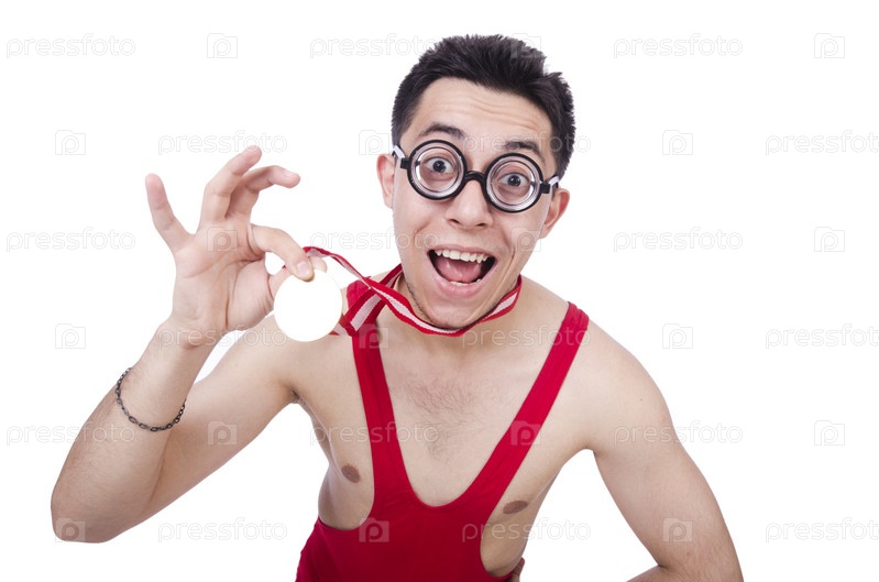 Смешной борец с медалью
