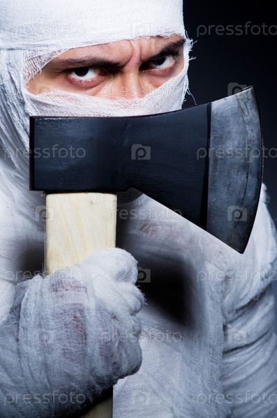 Мумия с топором в концепции Хэллоуина