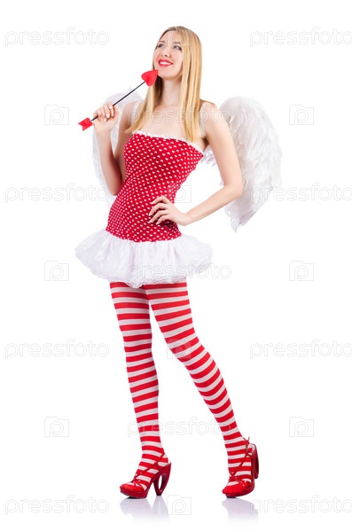 Женщина с луком в концепции дня святого Валентина