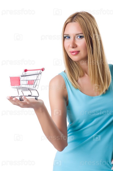 Женщина с корзиной, изолированная на белом фоне