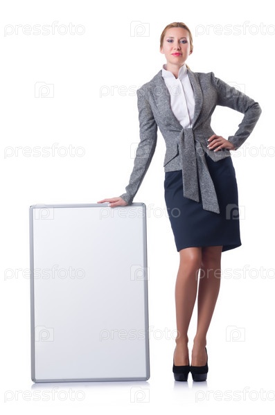 Бизнес-леди с баннером на белом