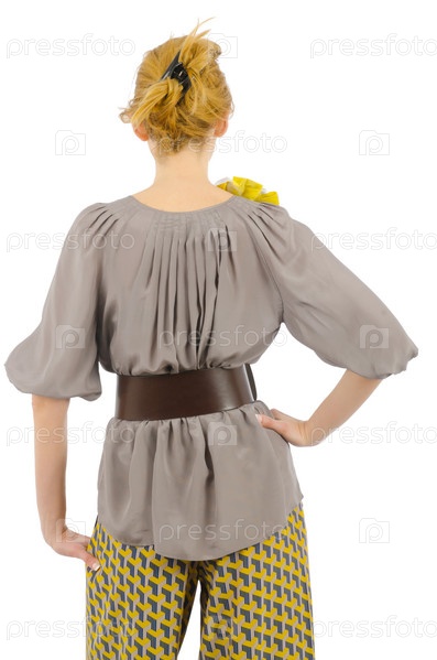 Женщина в концепции модной одежды на белом фоне