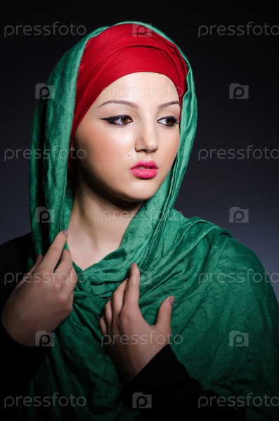 Мусульманская женщина с платком в концепции моды