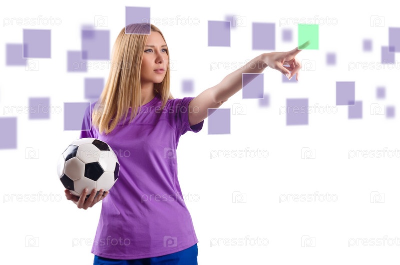 Футболистка нажимает виртуальные кнопки