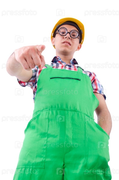Смешной строительный рабочий, изолированный на белом
