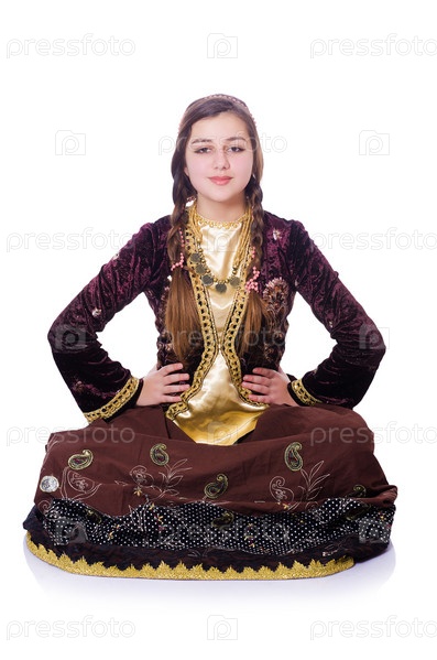 Молодая женщина танцует традиционный азербайджанский танец