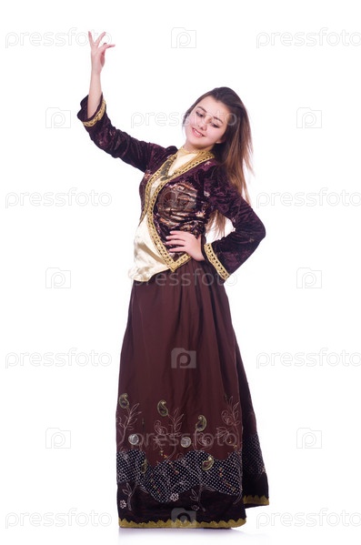 Молодая женщина танцует традиционный азербайджанский танец