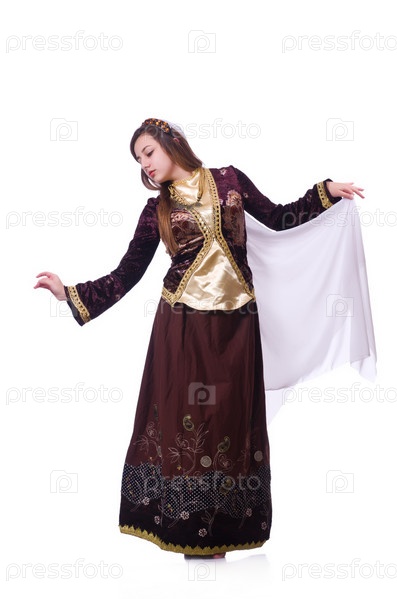 Молодая женщина танцует традиционный азербайджанский танец