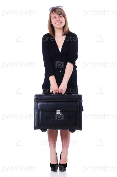 Молодая девушка путешественник, изолированная на белом