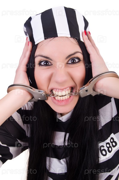 Заключенный в полосатой форме на белом фоне