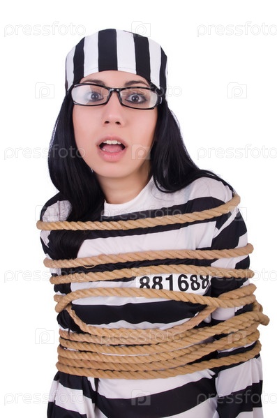 Заключенный в полосатой форме на белом фоне