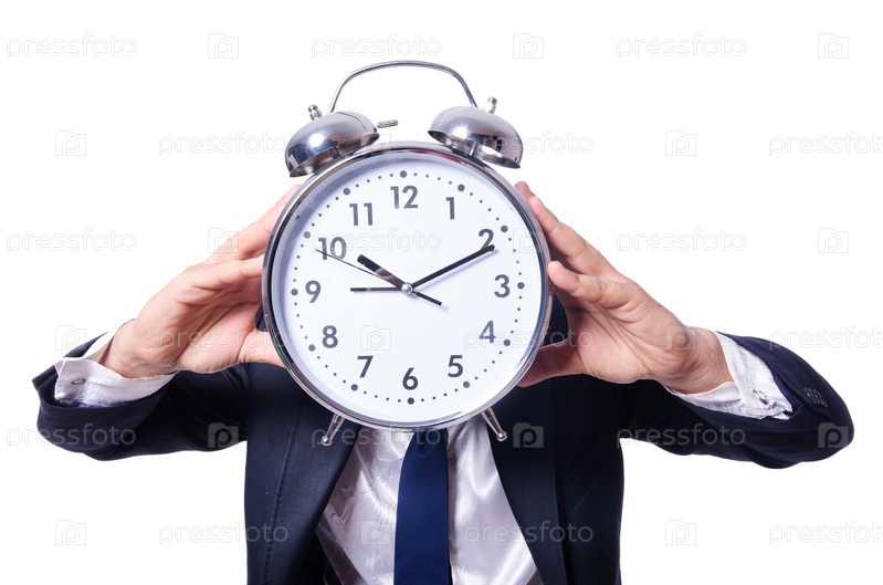 Бизнесмен с часами, изолированный на белом фоне