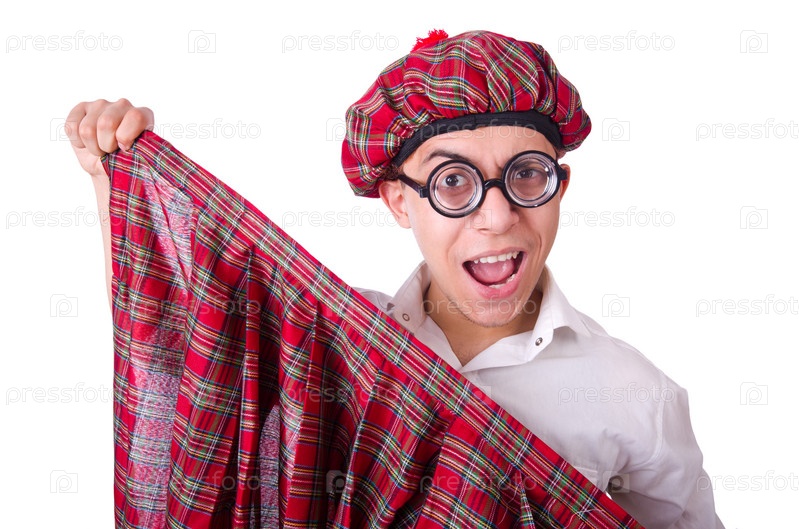 Смешной шотландец на белом фоне