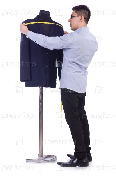 Смешной портной на белом фоне