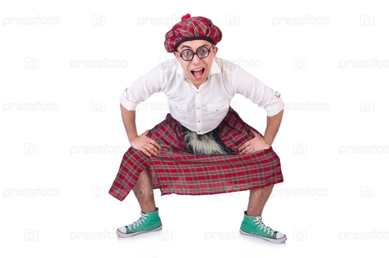 Смешной шотландец на белом фоне