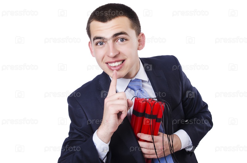 Бизнесмен с динамитом, изолированный на белом фоне