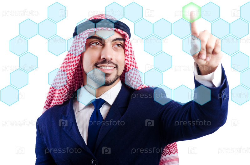 Араб нажимает на виртуальные кнопки