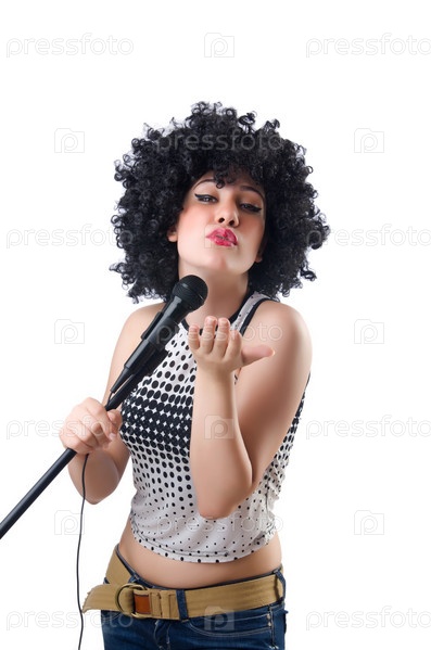 Поп-звезда с микрофоном на белом фоне