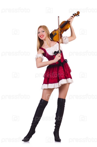 Девушка играет на скрипке на белом фоне