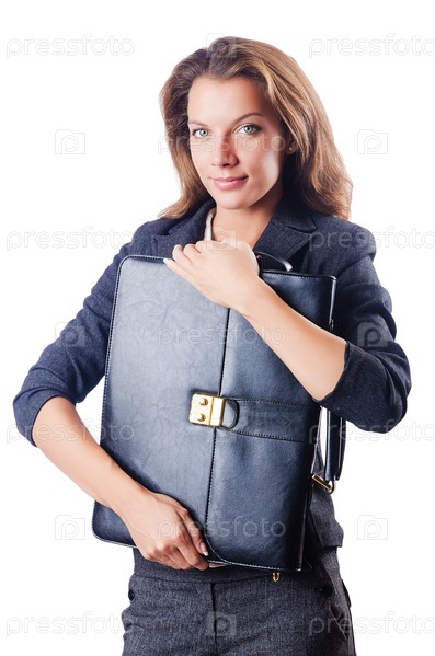 Бизнес-леди с портфелем на белом