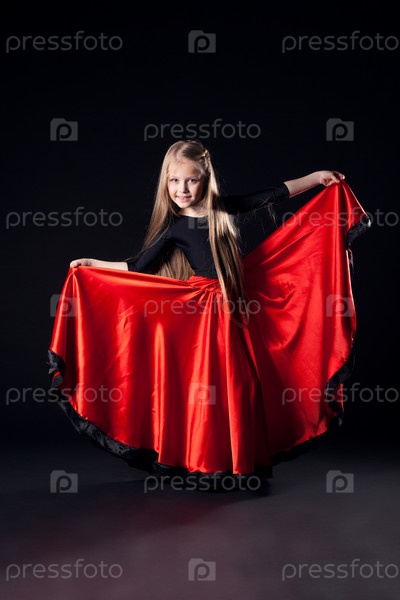 Красивая девочка танцует латиноамериканский танец в темноте
