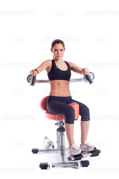 Брюнетка на оранжевом тренажере