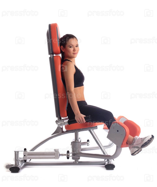 Брюнетка на оранжевом тренажере