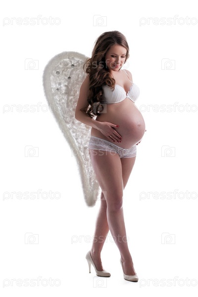 Молодая беременная женщина с крыльями ангела