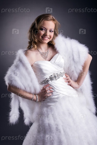 Портрет улыбающейся невеств, позируяющей в студии