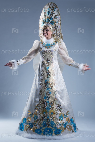 Жизнерадостная женщина в роскошном традиционном костюме