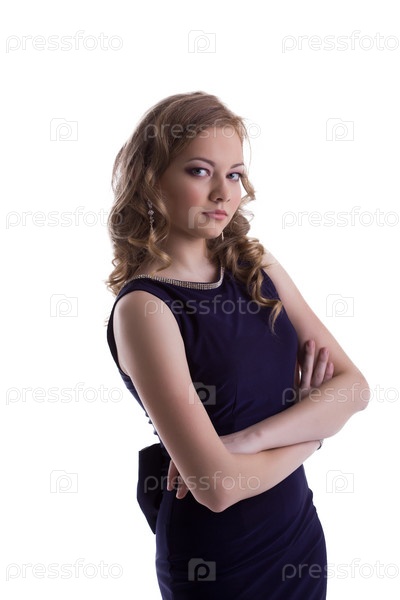 Портрет привлекательной девушки в синем платье