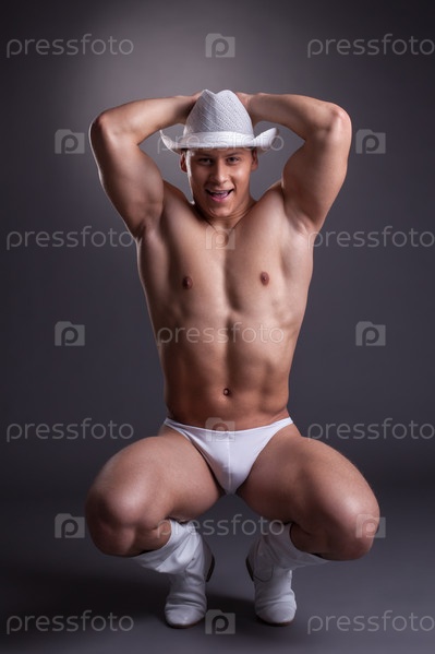 Молодой красивый стриптизер позирует в студии