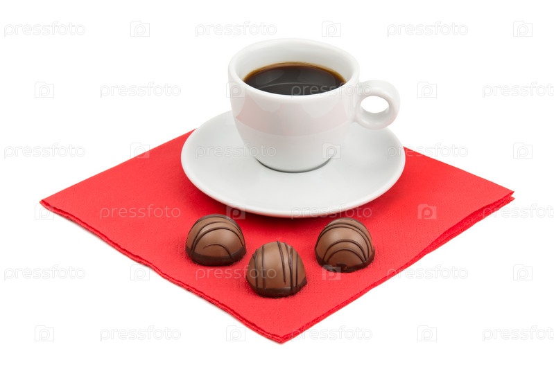 Чашка кофе и шоколадные конфеты
