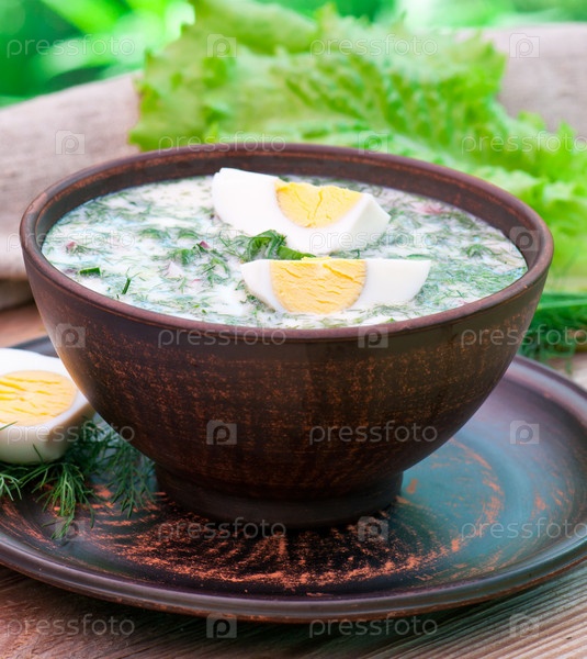 Холодный овощной суп с кефиром, яйцом и зеленью