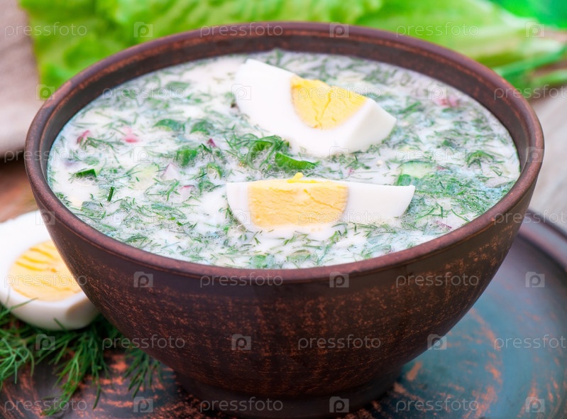 Холодный овощной суп с кефиром, яйцом и зеленью