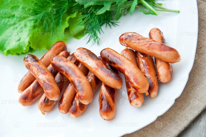 Приготовленные на гриле сосиски и салат