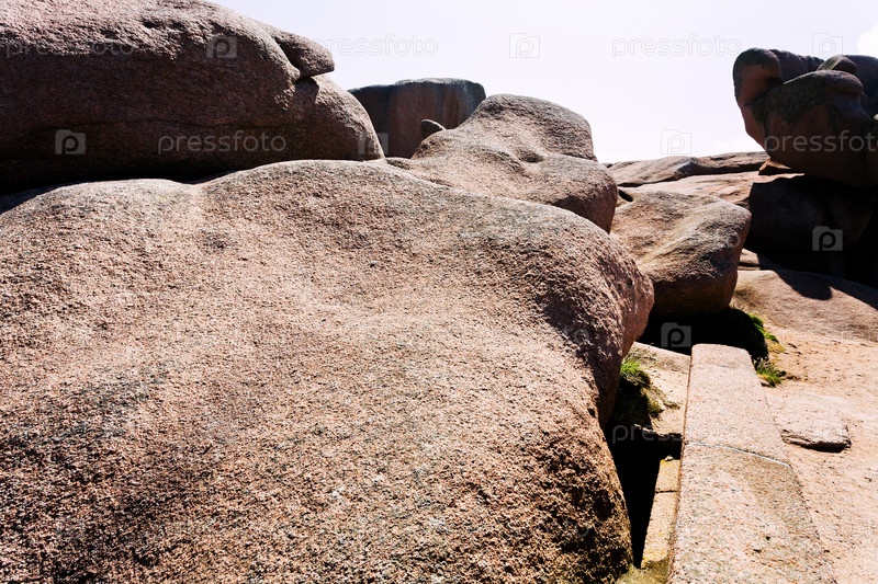 Большие розовые гранитные валуны