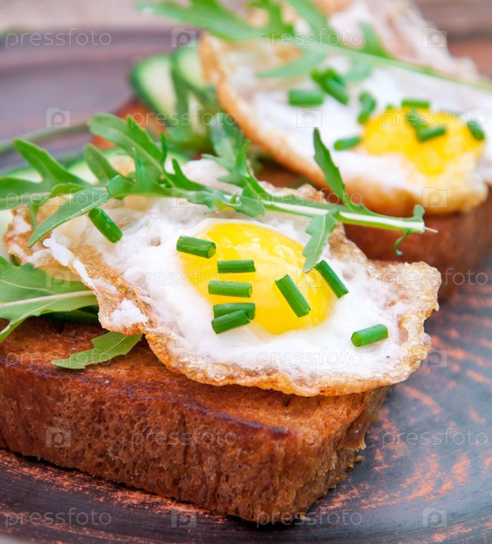 Тост с жареным яйцом, огурцом и рукколой