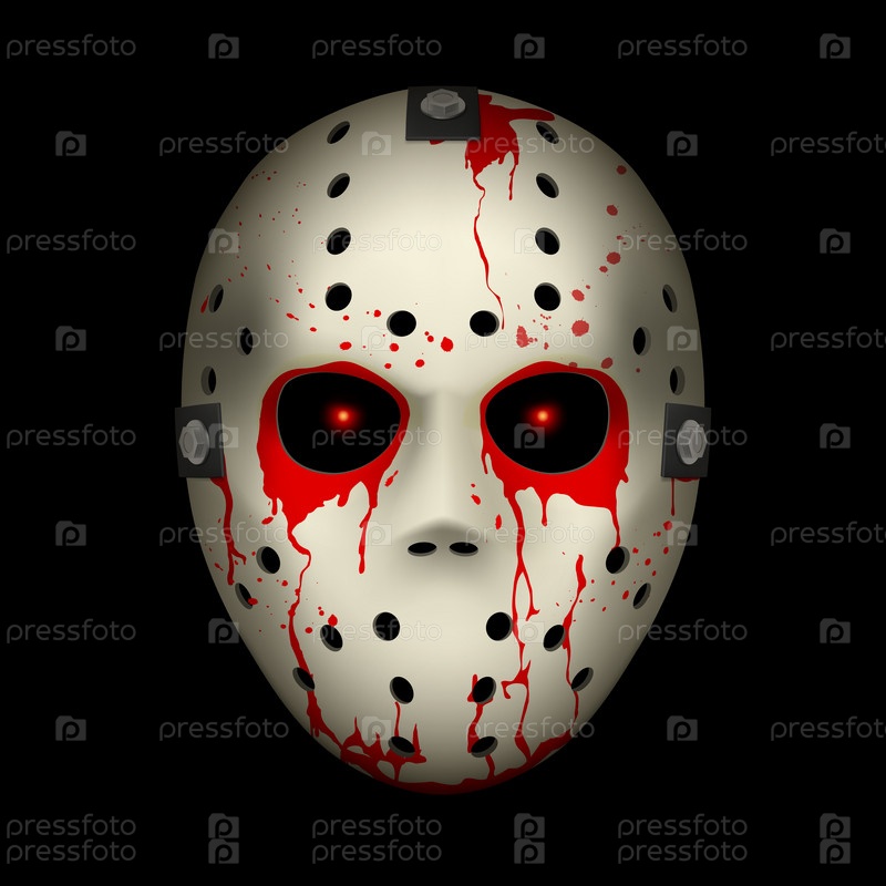Окровавленная хоккейная маска. Иллюстрация на черном фоне для дизайна