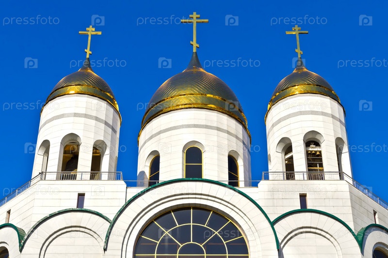 Золотые купола храма Христа Спасителя. Калининград, Россия