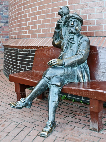 Скульптура старого шкипера с обезьянкой на плече. Рыбная деревня, Калининград, Россия